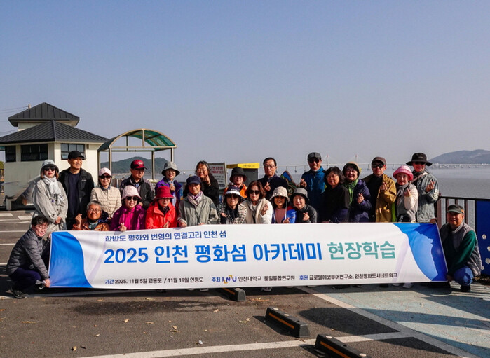 | ‘2025 인천 평화 섬 아카데미’ 현장학습 참가자들이 포즈를 취하고 있다. (사진=인천대) |