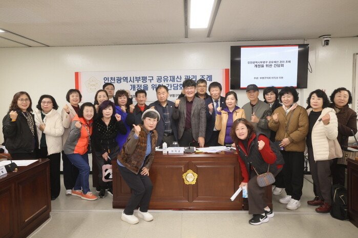 | ‘부평구 공유재산 관리 조례 개정’ 간담회 참가자들이 포즈를 취하고 있다. (사진=부평구의회) |