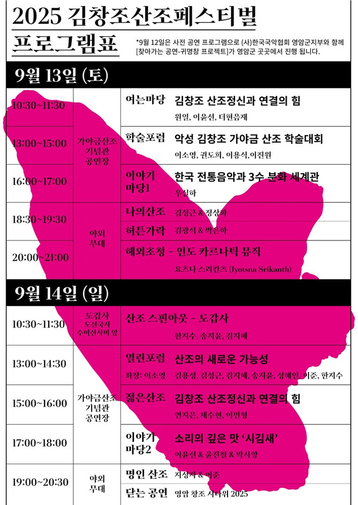 | ▲ 2025 김창조 가야금 산조 페스티벌 프로그램 타임테이블 이미지 / 영암군 제공 |