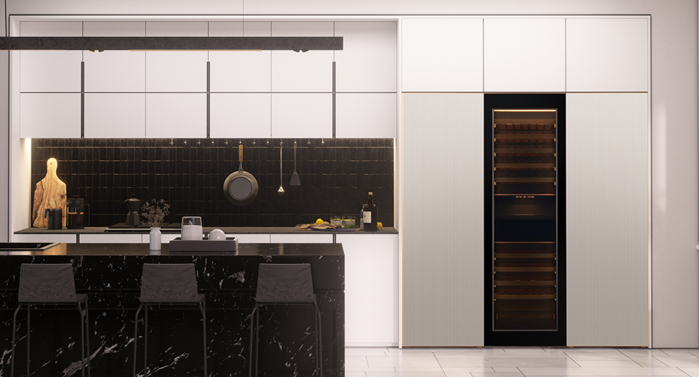 와인 냉장고는 최대 101병까지 수납할 수 있고, 총 3개의 온도존으로 구성해 각기 다른 와인 종류를 최적 온도로 보관 가능하다.