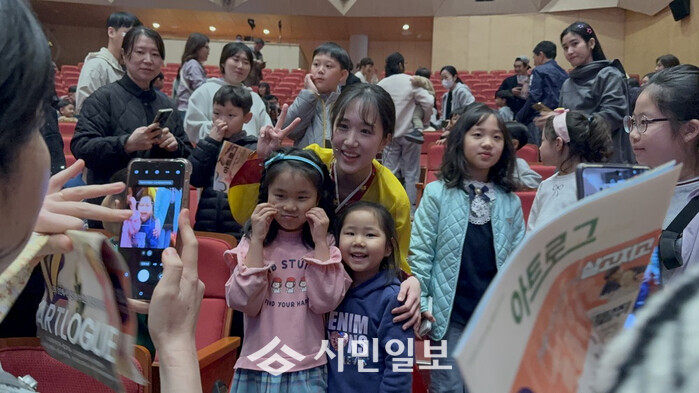 | ▲ 콩쥐팥쥐’를 관람한 어린이들이 출연 배우와 함께 기념촬영 / 강진군 제공 |