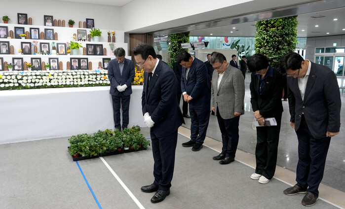 [남악=황승순 기자]김영록 전라남도지사는 추석을 앞둔 3일 제주항공 여객기 사고 희생자 무안공항 합동분향소를 찾아 헌화·분향하며 희생된 분들의 넋을 기렸다.
