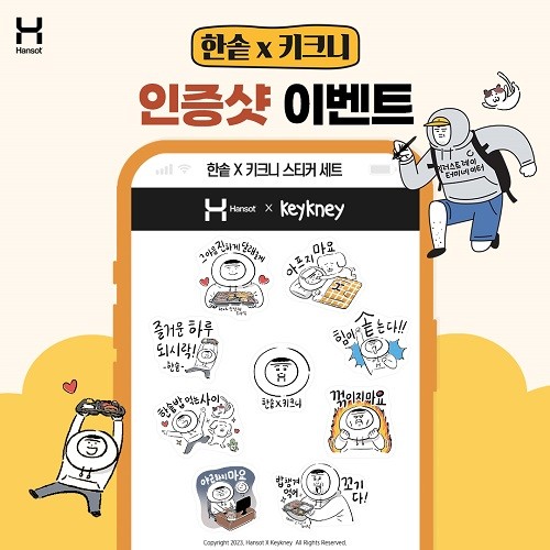 올해 창립 30주년을 맞은 한솥은 MZ세대와 소통을 확대하기 위해 인기 일러스트 작가 '키크니'와 함께 콜라보를 기획, 스티커를 제작했다. 키크니 스티커는 전국의 한솥 가맹점에서 1만 5천원 이상 구매 고객에게 1인 1매 선착순으로 증정한다.