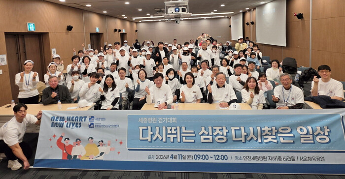 | 다시 뛰는 심장·다시 찾은 일상 2026년 걷기대회 행사 참가자들이 포즈를 취하고 있다. [사진=세종병원 제공] |