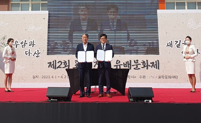 [강진=정찬남 기자] 전남 강진군문화관광재단과 포항문화재단이 지난 1일, 장기초등학교(포항 장기면)에서 ‘다산 정약용을 중심으로 한 유배문화와 지역 문화자산의 콘텐츠화를 통한 지역발전’ 관련 MOU를 체결했다.