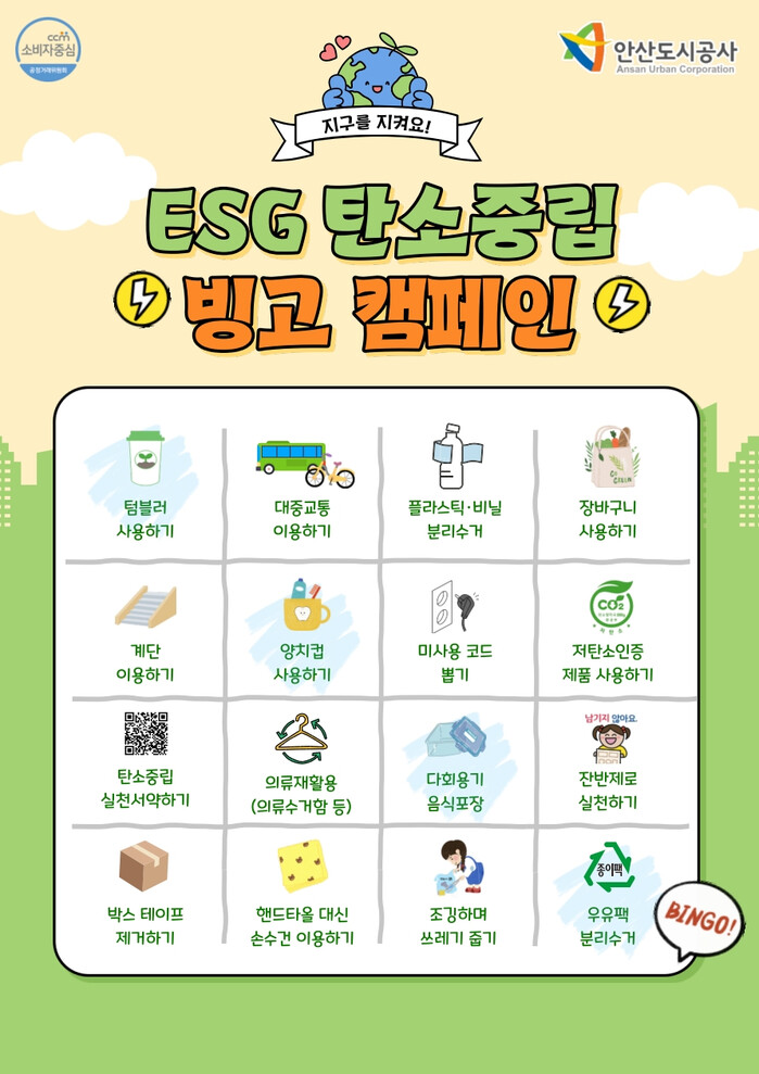 | ▲ 안산도시공사ESG 탄소중립 빙고 캠페인 홍보 포스터 /자료제공=안산도시공사 |
