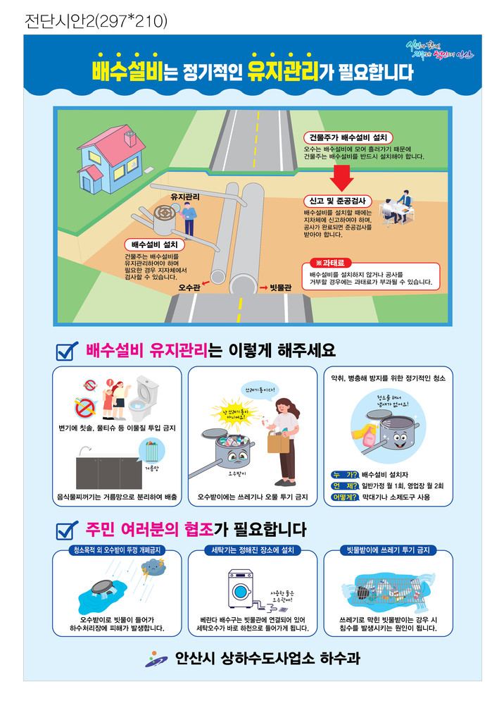 시는 시민들의 효율적인 배수설비 관리를 통해 공공하수도 관리의 원활한 기능 유지와 불필요한 예산 낭비를 방지할 수 있을 것으로 기대하고 있다.
