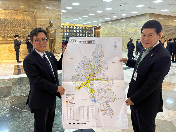 정 군수는 신정훈 행정안전위원회 위원장과 안도걸 의원에게 ▲하천 설계기준 개선 ▲가동보 전환 ▲퇴적토 재활용 규제 완화 ▲피해지도 제작 등 기후재난 대비 제도개선을 건의하며 “이는 특정 지자체가 아닌 전국적으로 필요한 과제”라고 강조했다.