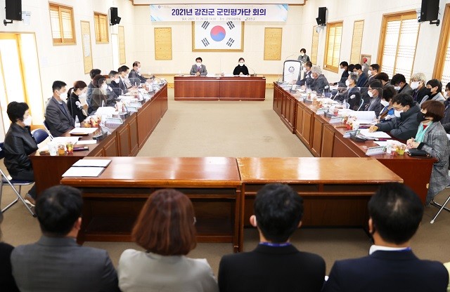 [강진=정찬남 기자] 전남 강진군은 지난 26일 군청 대회의실에서 군민평가단, 관계 공무원 등 50여 명이 참석한 가운데 2021년 군민평가단 군정주요사업 평가회의를 개최했다.