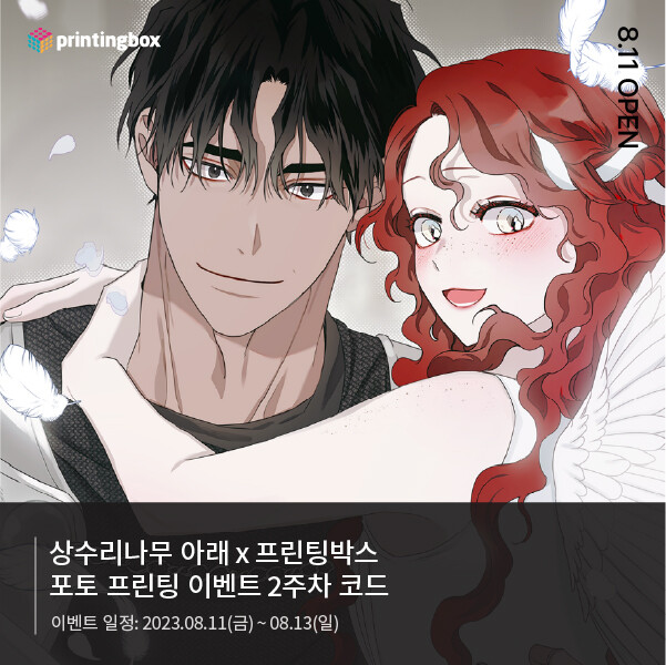 일부 점포를 제외한 전국 프린팅박스에서 출력할 수 있는 이번 이벤트는 1주차인 8월 4일부터 8월 6일 기간 공식 표지 일러스트를 비롯하여 시즌3 신규 표지 일러스트가 공개된 데 이은 2주차 이벤트로써 금주 8월 11일부터 8월 13일 23시 59분까지 웹툰 ‘상수리나무 아래’ 커플 특집이 공개된다.