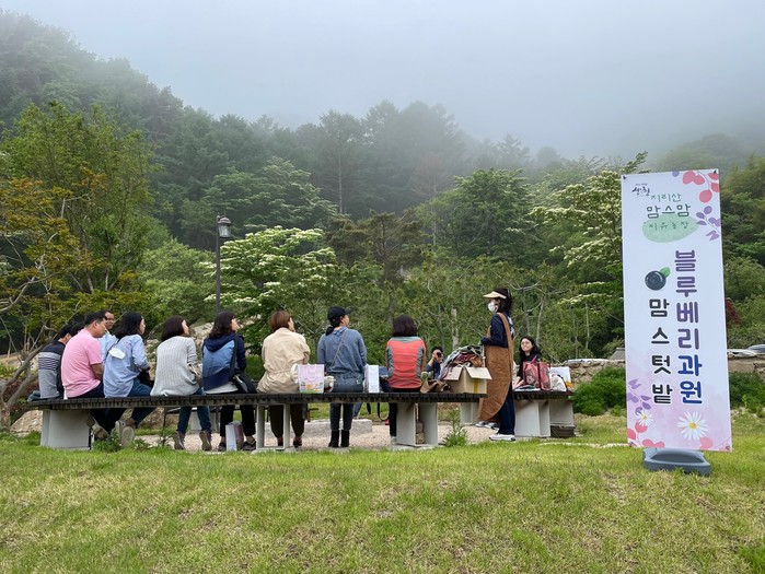 특히 껍질째 조리한 오색 샐러드, 오색과일 등 보기 좋고, 맛도 좋은 치유먹거리 체험과 블루베리 나무를 ‘내 반려작물’로 삼아 식재·재배하는 한편 명상하는 시간도 진행했다.