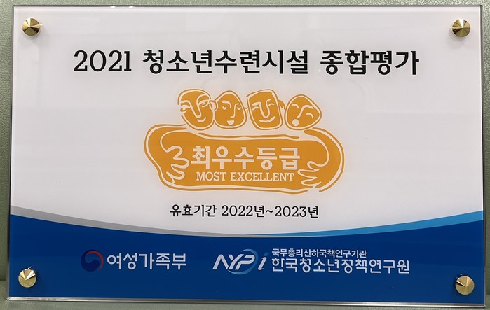 | ▲ 청소년수련시설 최우수등급현판 |