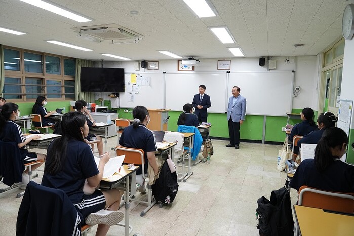 이날 하윤수 교육감은 무더운 날씨에도 학업에 매진하고 있는 학생들을 응원했다.