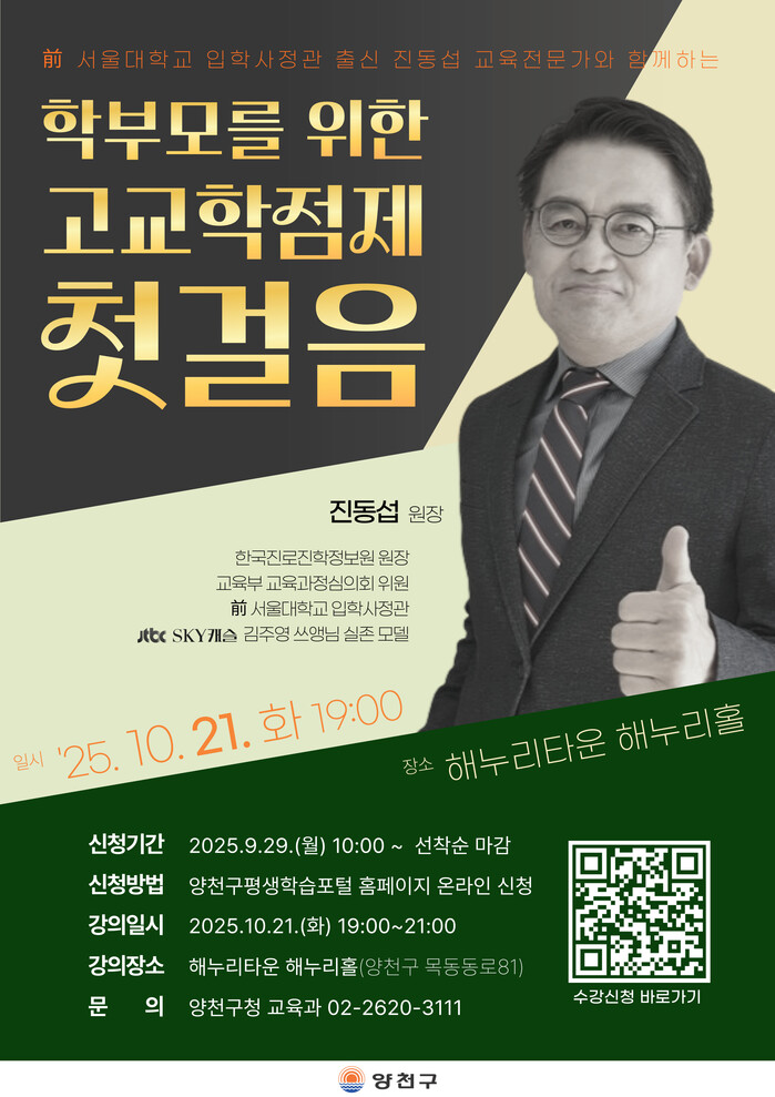 구는 이번 설명회를 통해 고교학점제 변화와 진로·진학 정보를 공유하며, 예비 고등학생들의 입시 준비를 지원하는 특별한 계기가 될 것으로 기대하고 있다.