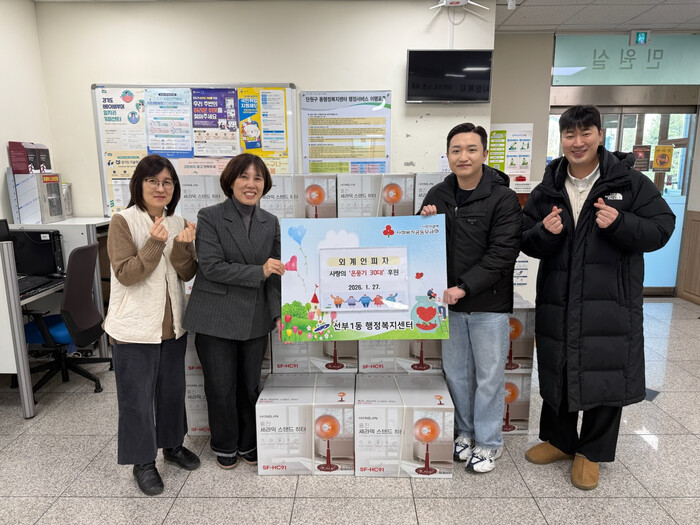 박은혜 선부1동장은 “안산 거주 청년 CEO분들의 사업이 더욱 번창해서 앞으로도 취약계층을 위한 도움이 계속 이어지기를 바란다”며 “후원해 주신 온풍기는 꼭 필요한 가정에 전달해 따뜻한 겨울을 보낼 수 있도록 하겠다”고 말했다.