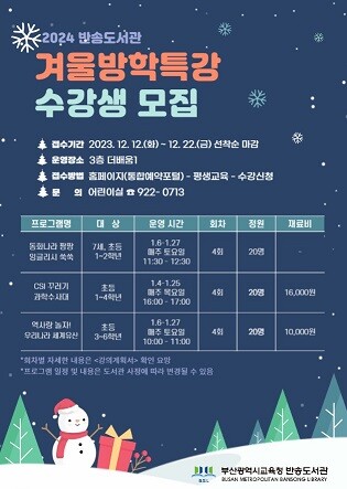 조수금 반송도서관장은 “다가오는 겨울방학, 어린이들이 책과 도서관을 가까이 해 유익하고 신나게 겨울방학을 보내길 바란다”고 말했다.