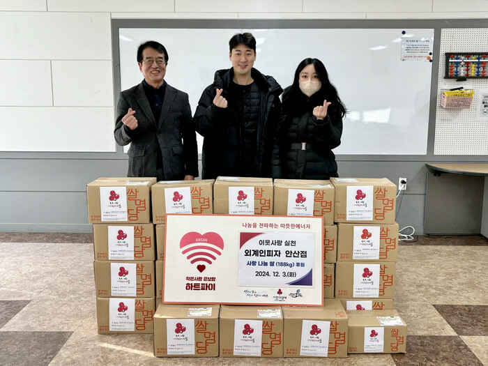 | ▲ 안산시 호수동 행정복지센터는 지난 3일 외계인피자로부터 취약계층을 위한 사랑의 후원물품(쌀 188kg)을 기탁받았다 /사진제공=안산시 |
