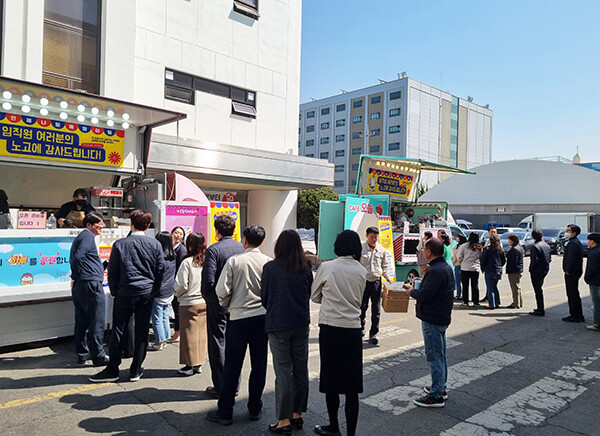 | ▲ 린나이가 노동조합 창립기념일을 맞아 임직원들을 위한 커피차 이벤트를 진행하는 모습 |