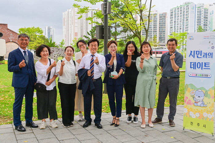 조규일 진주시장은 지난 11일 철도문화공원에서 진주시 공식밴드를 통해 모집된 참여자를 포함하여 평소 철도문화공원을 자주 이용하는 시민 10여 명과 함께 민선 8기 2주년 기념 ‘시민과의 데이트’ 시간을 가졌다.