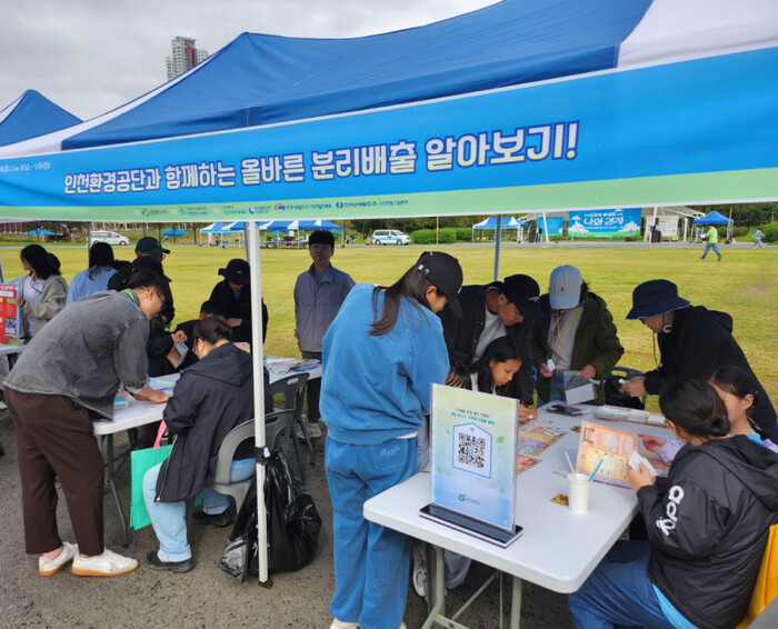| 인천환경공단이 ‘제3회 Live Walk’ 행사에서 올바른 분리배출 방법 환경교육 부스를 운영하고 있다. (사진=인천환경공단) |