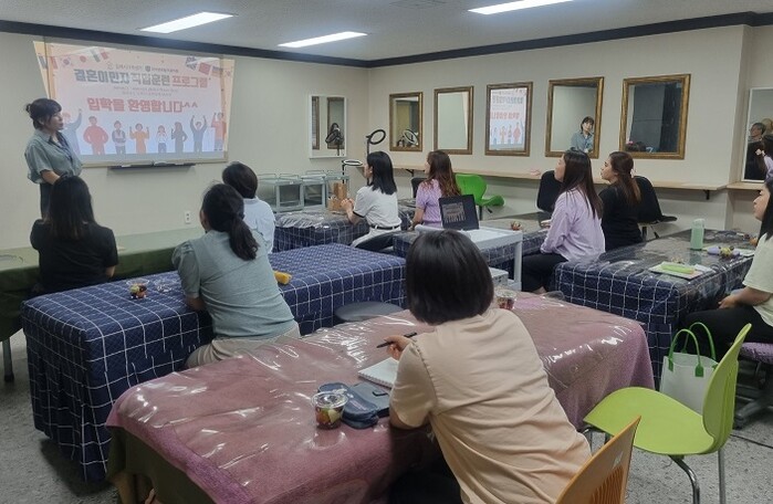 이 프로그램은 결혼이민자의 직업 역량을 키워 취·창업을 통한 사회 진출을 지원하고자 김해시가족센터에서 추진한다. 지난 4월에 시작한 한국어, 직장문화 이해 교육 등 직업훈련 사전교육을 이수한 결혼이민자 14명을 대상으로 이날부터 10월 7일까지 총 240시간 피부미용사 자격취득을 위한 이론과 실기교육을 진행한다.