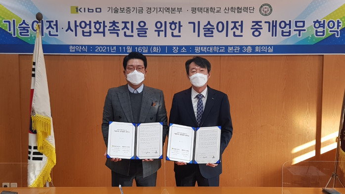 기술보증기금(이사장 김종호, 이하 ‘기보’)은 평택대학교 산학협력단(단장, 김호현, 이하 ‘평택대’)과 16일(화) 평택대 본관에서 「기술이전.사업화 촉진을 위한 기술이전 중개업무 협약」을 체결했다고 밝혔다.