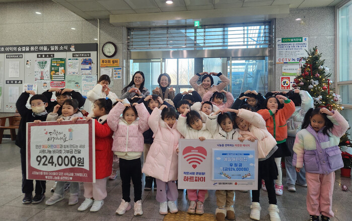 이혜숙 일동장은 “올해도 나눔을 실천해 주신 예일어린이집 원아들과 교직원분들께 깊은 감사의 말씀을 드린다”며 “소중한 후원금은 관내 독거노인 및 어려운 이웃을 위해 뜻깊게 사용하겠다”고 말했다.