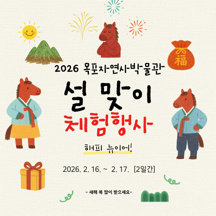 한편, 목포자연사박물관·생활도자박물관·어린이바다과학관은 설 연휴 기간 휴관 없이 정상 운영하며, 연휴가 끝난 19일 하루 휴관한다.