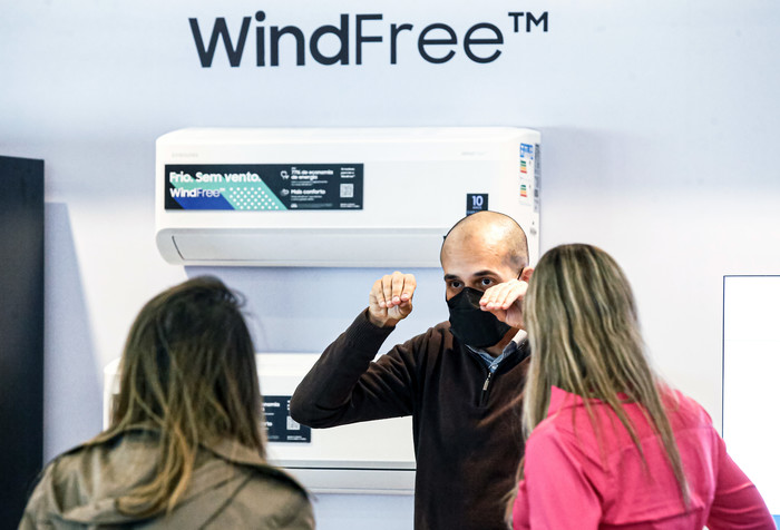 | ▲ 상파울루에 위치한 브라질 법인 쇼룸에서 2022년형 에어컨 신제품 행사가 진행 중인 모습.(사진제공=삼성전자) |