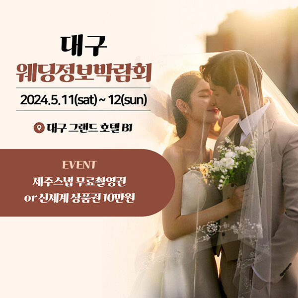 대구 그랜드호텔 지하 1층에서는 이번 5월, 대구와 경북 지역 예비 신랑신부들을 위한 대구웨딩정보박람회가 열린다.