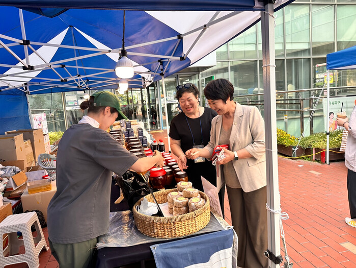 이혜숙 의장은 이날 설치된 매장들을 방문하여 소상공인들을 격려하고 현장의 다양한 의견 및 애로사항을 직접 들었으며, “이번 바자회를 통해 지역주민들에게 좋은 상품을 홍보할 수 있는 기회가 되고, 소상공인들도 경제적 수익을 기대할 수 있기를 바란다”라고 말했다.