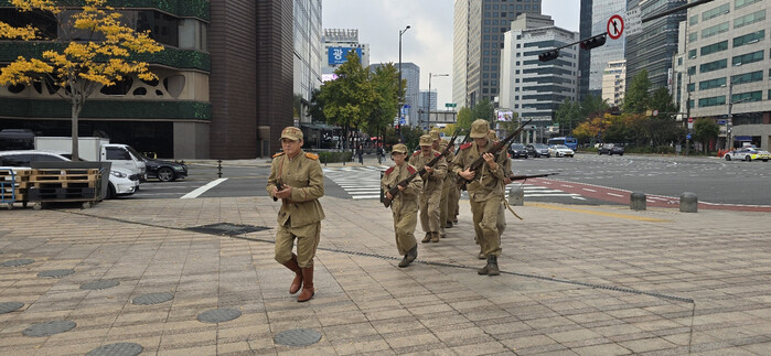 11월 4일(월) 아침 8시, 서울 시청 앞에서 출근길 시민들이 깜짝 놀란 사건이 벌어졌다. 실제처럼 보이는 인민군 복장을 하고 총기를 든 사람들이 전투 대형으로 이동하는 장면이 목격되며 일대가 소란스러워졌다.