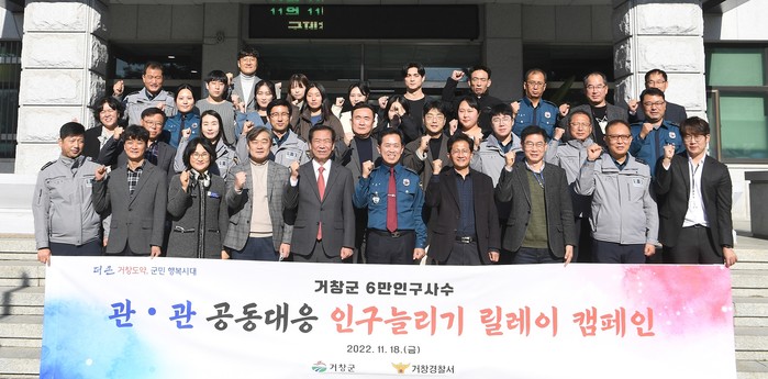 거창군은 6만 인구 붕괴 위험을 극복하기 위해 지난 8월 31일부터 거창군이장자율협의회 등 관내 기관·단체와 인구늘리기 민·관 공동대응 릴레이 협약을 추진하고 있다.