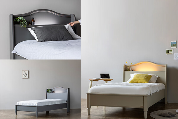 우아한 헤드보드의 곡선 디자인이 특징인 마들렌상점의 이번 신제품 조명침대는 소비자들의 취향에 맞게 선택이 가능하도록 크림 아이보리의 ‘마들렌, 봄 시리즈’와 켄달 차콜의 ‘소루쟁이, 피우다 시리즈’ 총 2개의 라인업으로 출시되었다.