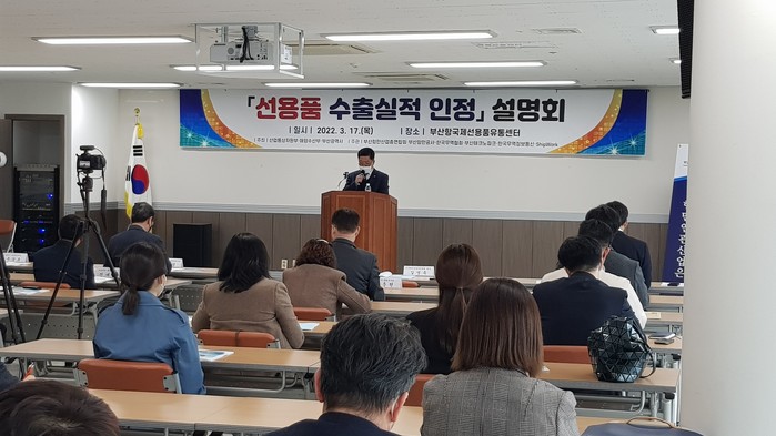 부산항만산업총연합회는 최근 선용품 공급업체 관계자 등이 참석한 가운데 선용품 수출실적 인정절차와 수출지원 정부정책 등을 안내하는「선용품 수출실적 인정 설명회」를 개최하였다고 밝혔다.