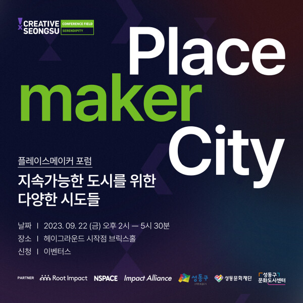 크리에이티브X성수는 성수동에서 활동하는 기업들이 주도적으로 기획하여 만드는 민간협력 박람회형 축제다. 이번 컨퍼런스 필드에서는 '지속가능한 도시를 위한 다양한 시도들'이라는 주제로 플레이스메이커 포럼이 개최된다.