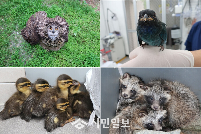 구조된 개체 중에는 수리부엉이(2마리), 팔색조(4마리), 수달(3마리), 하늘다람쥐(2마리), 새매(3마리), 남생이(1마리) 등 천연기념물이자 멸종위기 야생동물이 다수 포함돼 있다.