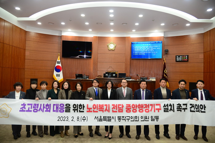 [시민일보 = 여영준 기자] 서울 동작구의회(의장 이미연)가 지난 8일 제326회 임시회 제1차 본회의에서 ‘초고령사회 대응을 위한 노인복지 전담 중앙행정기구 설치 촉구 건의안’을 채택했다.