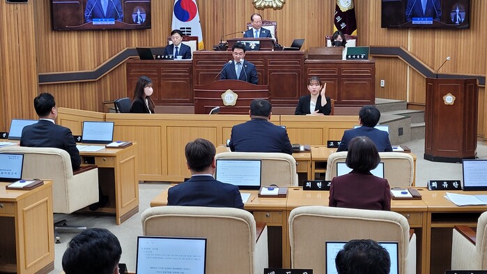 이 자리에서 시의원들을 대표해 박효상 의원은 "고경욱 의원의 떨리는 목소리로 고백하는 사연을 들으며 시의원 일동은 참담함을 금할 수 없었다"면서 "공무원이 시의원을 협박한 것은 민주주의의 근간을 흔들고 시민의 권리를 위협하는 중대한 침해행위다"고 지적했다.
