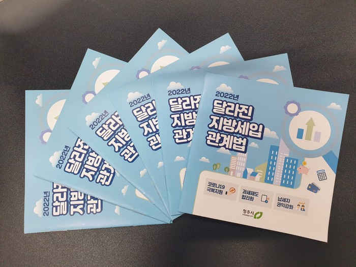 청주시가 2022년 달라진 지방세 등 제도에 대해 납세자들의 알 권리 충족을 위해 안내 소책자를 제작해 시청 민원실, 구청 세무과, 읍‧면행정복지센터 등에 비치해 적극적인 홍보에 나섰다.