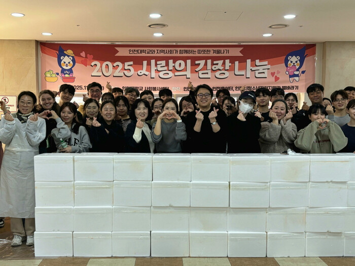 인천대 사회봉사센터 주관으로 진행된 ‘2025년 동계 사랑의 김장 나눔 봉사’에는 교직원봉사단과 재학생 등 40여 명, 인천시청소년자립지원관 별바라기가 동참, 봉사의 의미를 더했다.