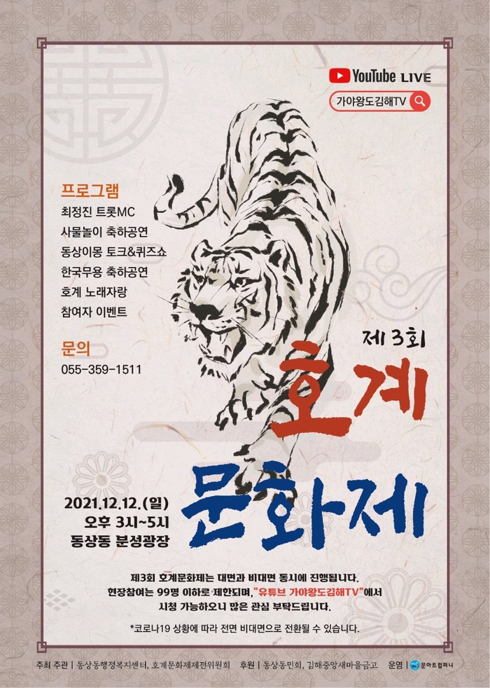 특히 올해에는 코로나 시대에 맞춰 방역 수칙을 준수하며 동상동민의 참여기회를 확대하기 위한 비대면 마을축제로서 유튜브 가야왕도 김해TV와 줌(ZOOM)을 활용해 장소 제한 없이 실시간 시청 및 양방향 참여가 가능한 방식으로 진행된다.