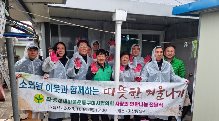 행사에는 직장‧공장새마을운동 구미시협의회 회원 등 15명이 참여했으며, 독거노인 등 취약계층 20세대에 연탄 200장씩, 총 4,000장을 전달하고 따뜻한 이웃사랑을 실천했다.