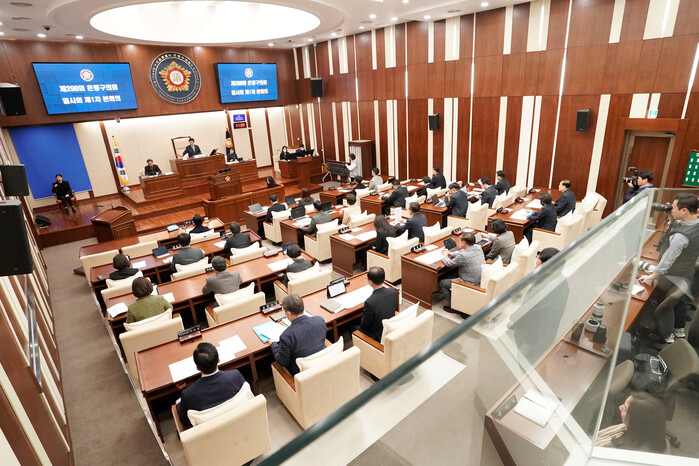기노만 의장은 개회사를 통해 “올해 첫 추경안이 89억 규모로 제출되었고, 이번 임시회는 지역경제 활성화와 취약계층 사회안전망 구축을 위해 고향사랑기부제 운영비, 어린이집 확충 등을 포함하는 추경안을 심의하는 중요한 회기”라며 “우리 구 재정 여건을 고려하여 예산이 적재적소에 반영되고 있는지, 구민의 복리증진과 구정 발전에 꼭 필요한 사업예산이 누락되지는 않았는지, 더욱 세심하게 살펴 구민의 혈세가 헛되이 쓰이는 일이 없도록 다 같이 고민해 주시기 바란다”라고 말하였다.
