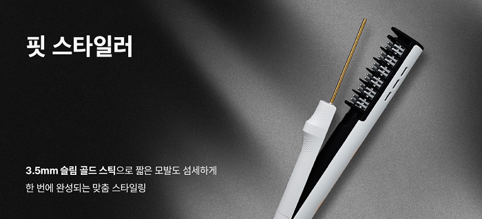 핏스타일러(Fit Styler)는 스타일링 경험이 부족한 남성도 손쉽게 완성된 헤어스타일을 연출할 수 있도록 특화된 전용 디바이스다. 브러쉬&스틱 구조가 모발을 안정적으로 잡아 간단한 스타일링이 가능하며, 3.5mm 슬림 골드 스틱이 짧은 모발까지 섬세하게 연출해준다.