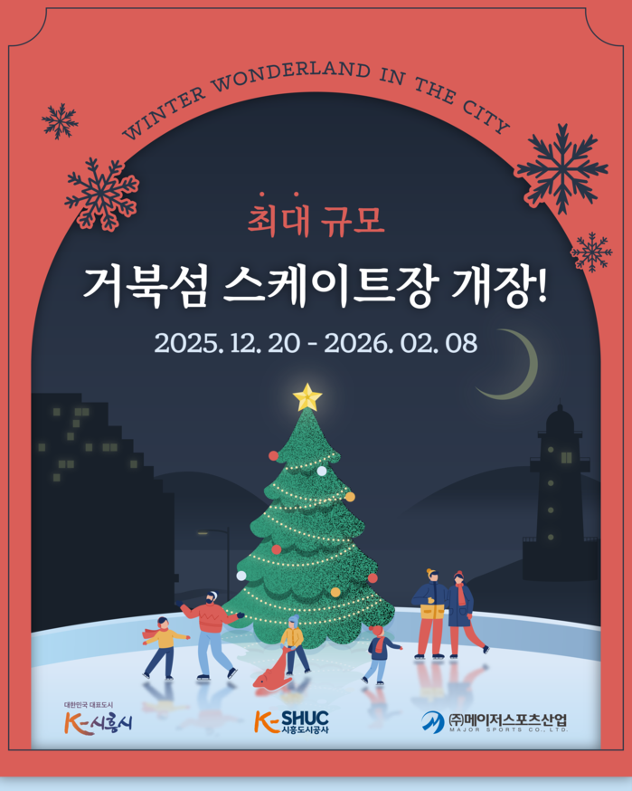 [시흥=송윤근 기자] 경기 시흥도시공사(사장 유병욱, 이하 공사)는 시흥 거북섬 일대에 조성 중인 ‘거북섬 스케이트장'이 오는 12월 20일부터 내년 2월 8일까지 총 51일간 운영에 들어간다고 16일 밝혔다. 이번 스케이트장 개장은 시흥시민뿐만 아니라 수도권 시민들의 겨울철 레저 활동 거점이 될 것으로 큰 기대를 모으고 있다.