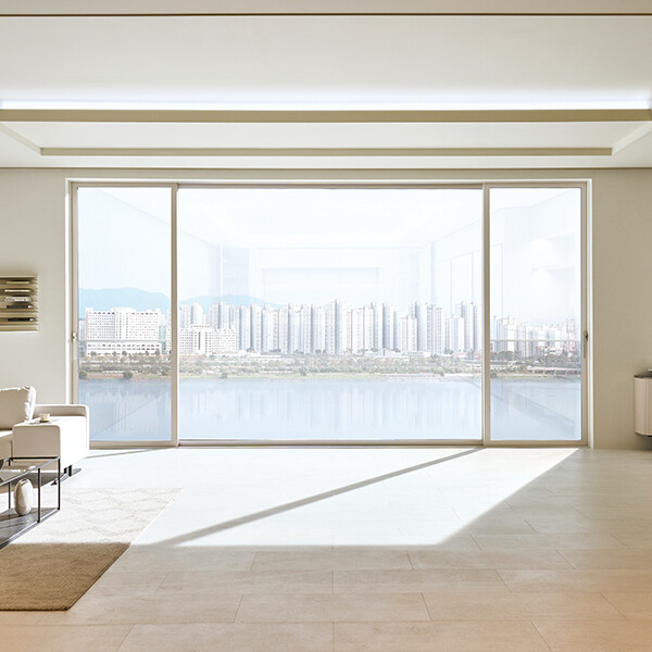 LX하우시스는 넓은 시야와 미니멀한 디자인을 자랑하는 ‘뷰프레임’ 창호를 통해 프리미엄 가치를 강조한다. 뷰프레임은 기존보다 슬림해진 창호 프레임(창짝+창틀)을 통해 더 넓은 뷰를 제공한다는 의미를 담은 제품으로, 창틀이 거의 보이지 않고 창짝만 보이는 베젤리스 디자인을 국내 최초로 도입했다.