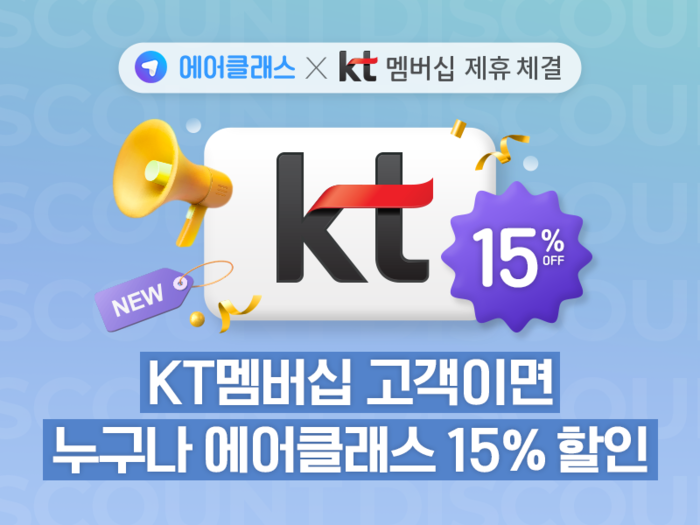 온라인 클래스 플랫폼 ‘에어클래스’가 KT와 멤버십 제휴를 통해 수강생들에게 상시 15% 할인 혜택을 제공한다고 밝혔다.