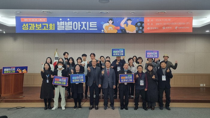 [영천=박병상 기자] 영천시(시장 최기문)는 지난 28일 (재)경북테크노파크 그린기업지원센터에서 교육 수료생 및 시‧도 관계자 40여 명이 참석한 가운데 2024년 1인 미디어 스튜디오 「별★별아지트」 성과보고회를 개최했다.