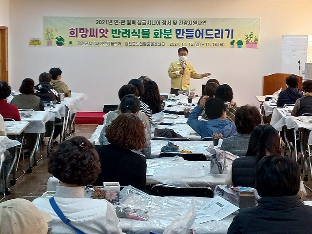 이번 사업은 함께 사는 가족이 없어 우울감, 외로움, 영양 불균형 등의 도움과 관심이 필요한 홀몸 어르신들께 적절한 영양공급과 정서적 안정을 지원하고자 민·관 협력으로 ‘희망씨앗 반려식물 화분 만들어 드리기’와 ‘밑반찬 만들기’ 등 2개 사업을 추진했다.